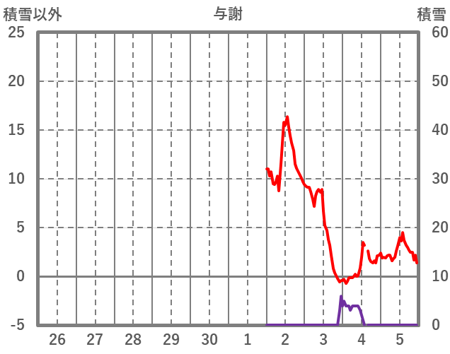 | 日 | 時 | 気温 | 降水 | 風向/風速 | 日照 | 積雪 | 降雪 |