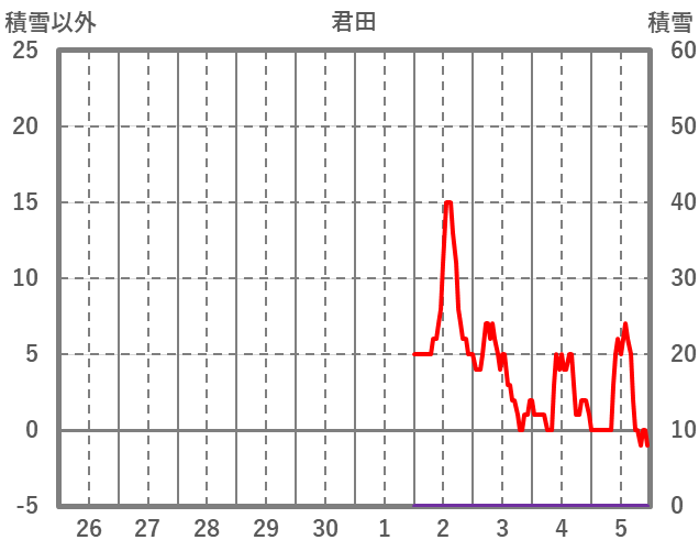 | 日 | 時 | 気温 | 降水 | 風向/風速 | 日照 | 積雪 | 降雪 |