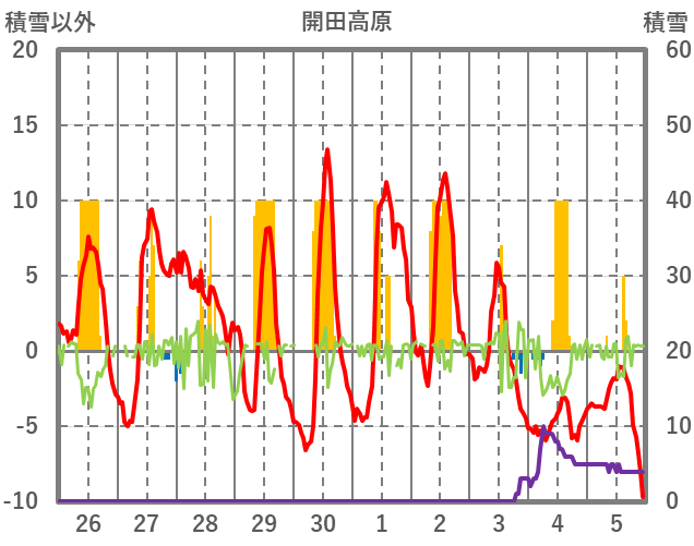 | 日 | 時 | 気温 | 降水 | 風向/風速 | 日照 | 積雪 | 降雪 |