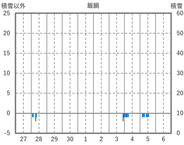 | 日 | 時 | 気温 | 降水 | 風向/風速 | 日照 | 積雪 | 降雪 |