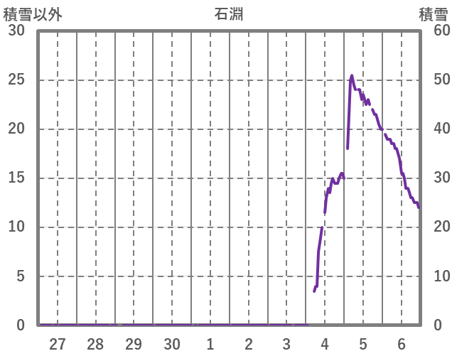 | 日 | 時 | 気温 | 降水 | 風向/風速 | 日照 | 積雪 | 降雪 |