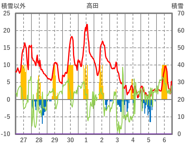 | 日 | 時 | 気温 | 降水 | 風向/風速 | 日照 | 積雪 | 降雪 |