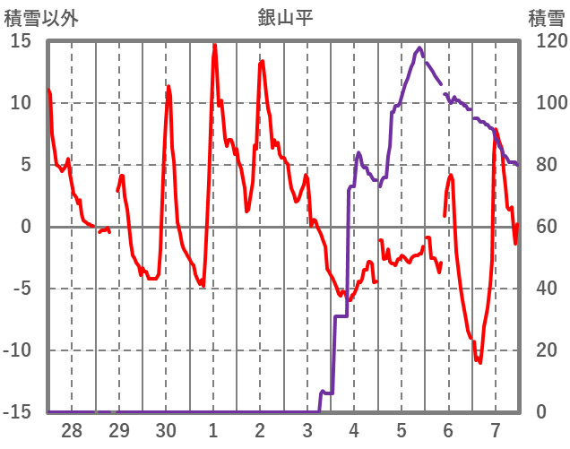 | 日 | 時 | 気温 | 降水 | 風向/風速 | 日照 | 積雪 | 降雪 |