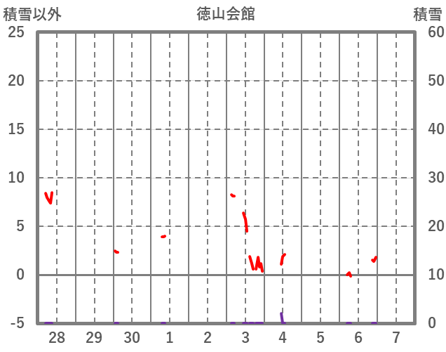 | 日 | 時 | 気温 | 降水 | 風向/風速 | 日照 | 積雪 | 降雪 |