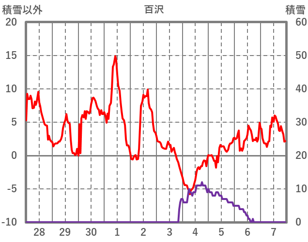 | 日 | 時 | 気温 | 降水 | 風向/風速 | 日照 | 積雪 | 降雪 |