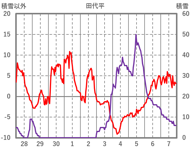 | 日 | 時 | 気温 | 降水 | 風向/風速 | 日照 | 積雪 | 降雪 |