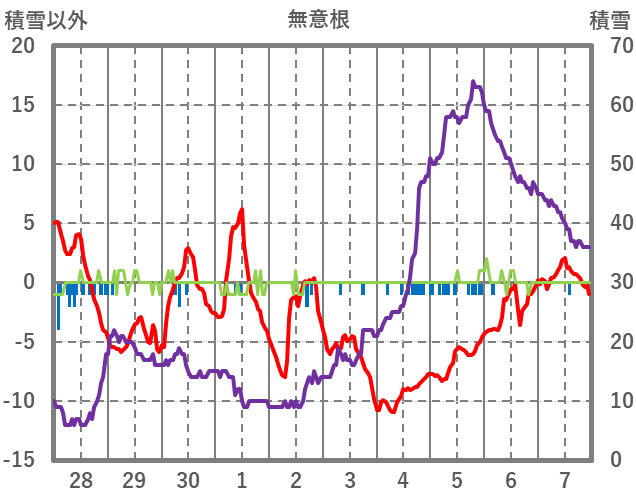 | 日 | 時 | 気温 | 降水 | 風向/風速 | 日照 | 積雪 | 降雪 |