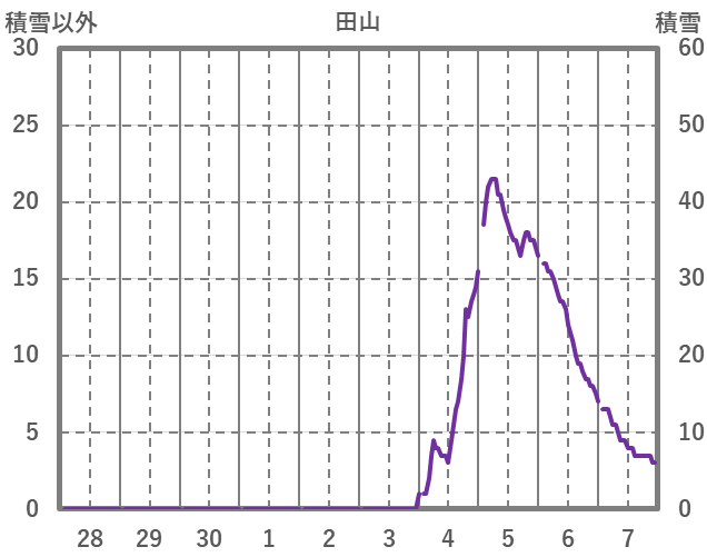 | 日 | 時 | 気温 | 降水 | 風向/風速 | 日照 | 積雪 | 降雪 |