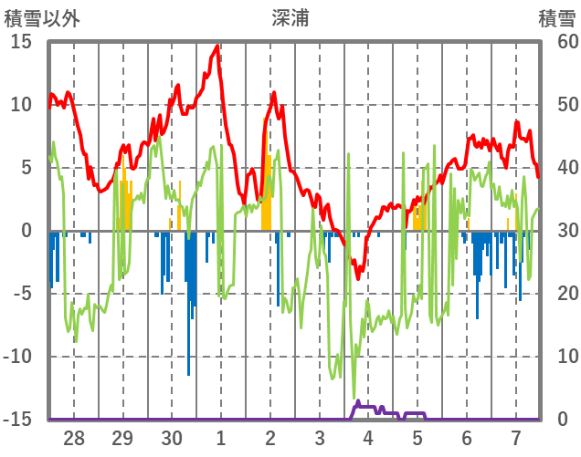 | 日 | 時 | 気温 | 降水 | 風向/風速 | 日照 | 積雪 | 降雪 |
