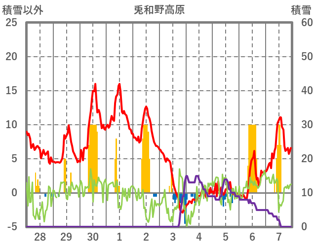 | 日 | 時 | 気温 | 降水 | 風向/風速 | 日照 | 積雪 | 降雪 |