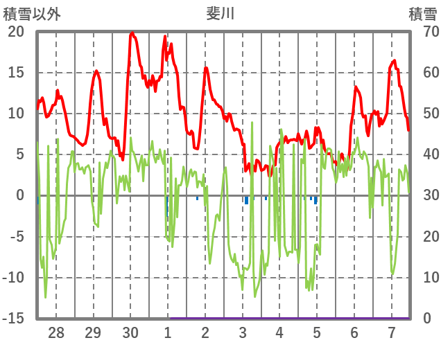 | 日 | 時 | 気温 | 降水 | 風向/風速 | 日照 | 積雪 | 降雪 |