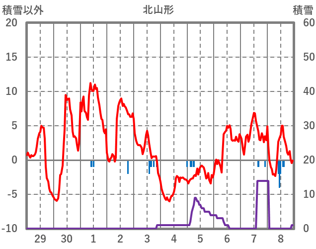 | 日 | 時 | 気温 | 降水 | 風向/風速 | 日照 | 積雪 | 降雪 |