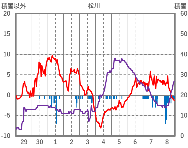 | 日 | 時 | 気温 | 降水 | 風向/風速 | 日照 | 積雪 | 降雪 |