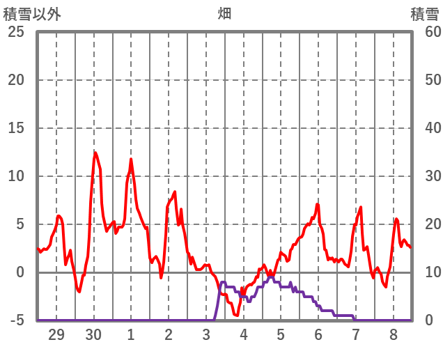 | 日 | 時 | 気温 | 降水 | 風向/風速 | 日照 | 積雪 | 降雪 |