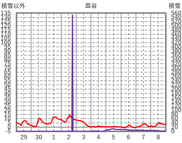 | 日 | 時 | 気温 | 降水 | 風向/風速 | 日照 | 積雪 | 降雪 |