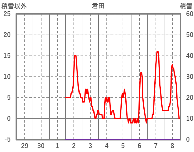 | 日 | 時 | 気温 | 降水 | 風向/風速 | 日照 | 積雪 | 降雪 |