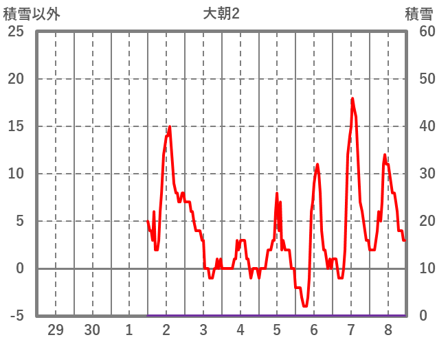 | 日 | 時 | 気温 | 降水 | 風向/風速 | 日照 | 積雪 | 降雪 |