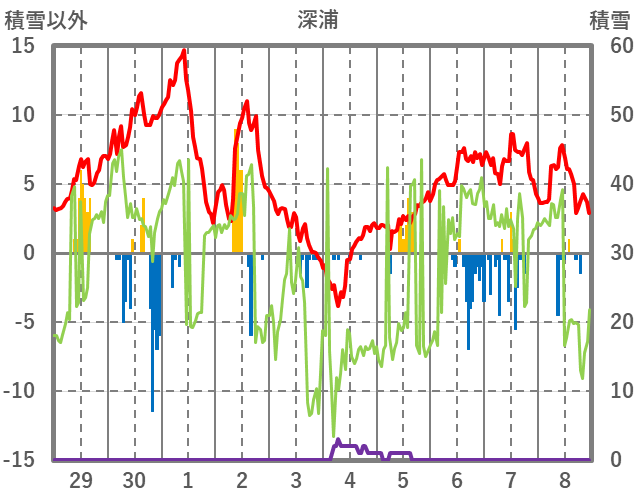 | 日 | 時 | 気温 | 降水 | 風向/風速 | 日照 | 積雪 | 降雪 |