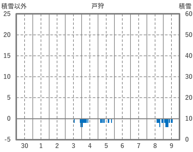 | 日 | 時 | 気温 | 降水 | 風向/風速 | 日照 | 積雪 | 降雪 |