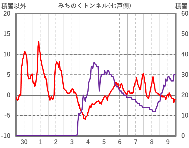 | 日 | 時 | 気温 | 降水 | 風向/風速 | 日照 | 積雪 | 降雪 |
