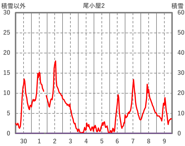 | 日 | 時 | 気温 | 降水 | 風向/風速 | 日照 | 積雪 | 降雪 |