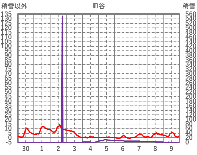 | 日 | 時 | 気温 | 降水 | 風向/風速 | 日照 | 積雪 | 降雪 |