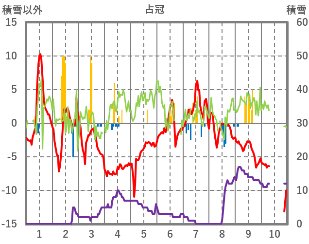 | 日 | 時 | 気温 | 降水 | 風向/風速 | 日照 | 積雪 | 降雪 |