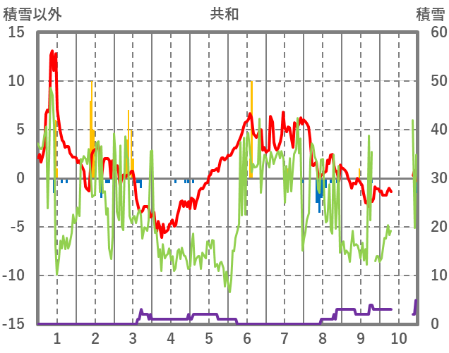 | 日 | 時 | 気温 | 降水 | 風向/風速 | 日照 | 積雪 | 降雪 |