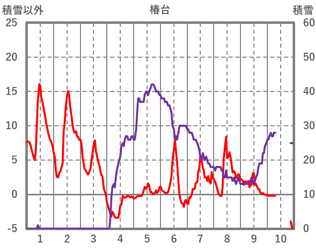 | 日 | 時 | 気温 | 降水 | 風向/風速 | 日照 | 積雪 | 降雪 |