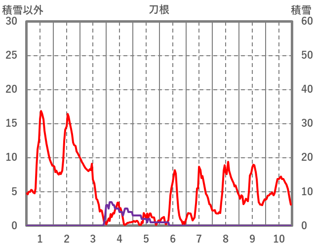 | 日 | 時 | 気温 | 降水 | 風向/風速 | 日照 | 積雪 | 降雪 |