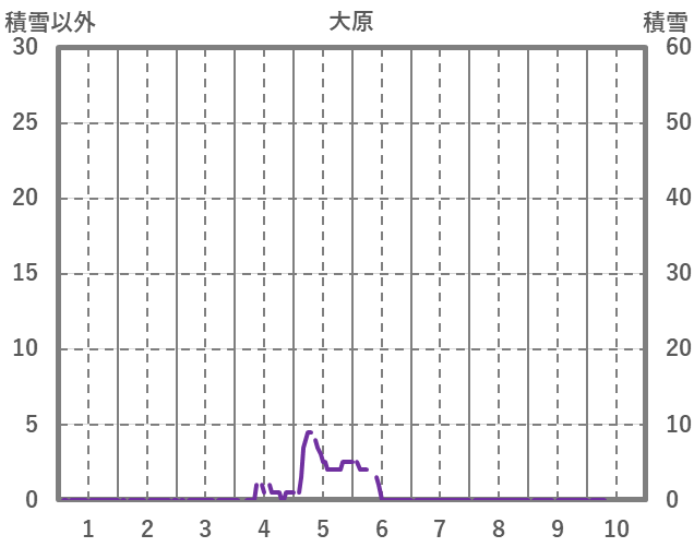 | 日 | 時 | 気温 | 降水 | 風向/風速 | 日照 | 積雪 | 降雪 |