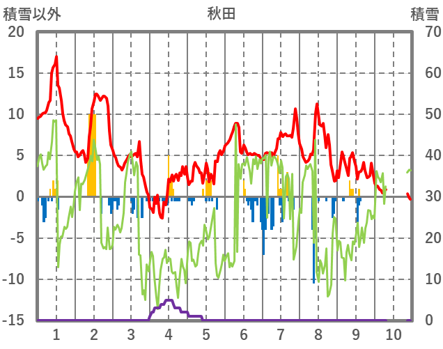 | 日 | 時 | 気温 | 降水 | 風向/風速 | 日照 | 積雪 | 降雪 |