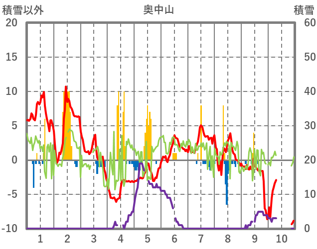 | 日 | 時 | 気温 | 降水 | 風向/風速 | 日照 | 積雪 | 降雪 |