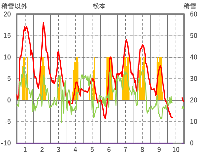 | 日 | 時 | 気温 | 降水 | 風向/風速 | 日照 | 積雪 | 降雪 |