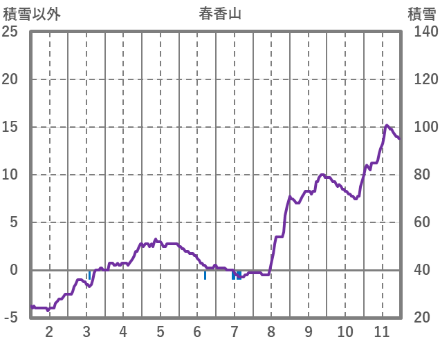 | 日 | 時 | 気温 | 降水 | 風向/風速 | 日照 | 積雪 | 降雪 |