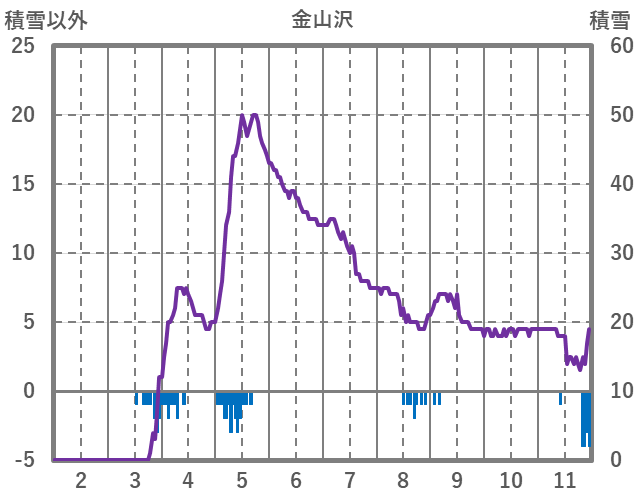 | 日 | 時 | 気温 | 降水 | 風向/風速 | 日照 | 積雪 | 降雪 |