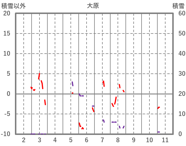 | 日 | 時 | 気温 | 降水 | 風向/風速 | 日照 | 積雪 | 降雪 |