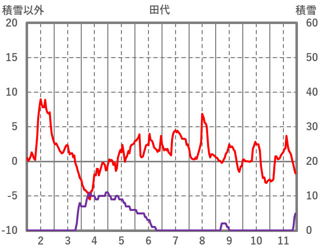 | 日 | 時 | 気温 | 降水 | 風向/風速 | 日照 | 積雪 | 降雪 |
