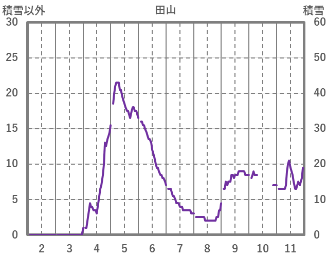 | 日 | 時 | 気温 | 降水 | 風向/風速 | 日照 | 積雪 | 降雪 |