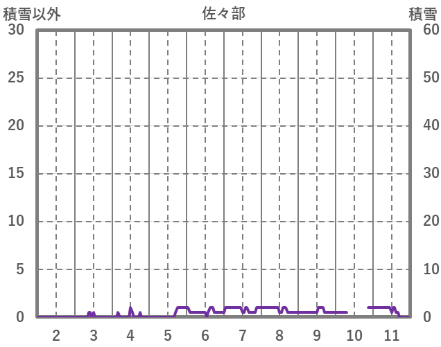 | 日 | 時 | 気温 | 降水 | 風向/風速 | 日照 | 積雪 | 降雪 |