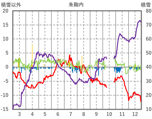 | 日 | 時 | 気温 | 降水 | 風向/風速 | 日照 | 積雪 | 降雪 |