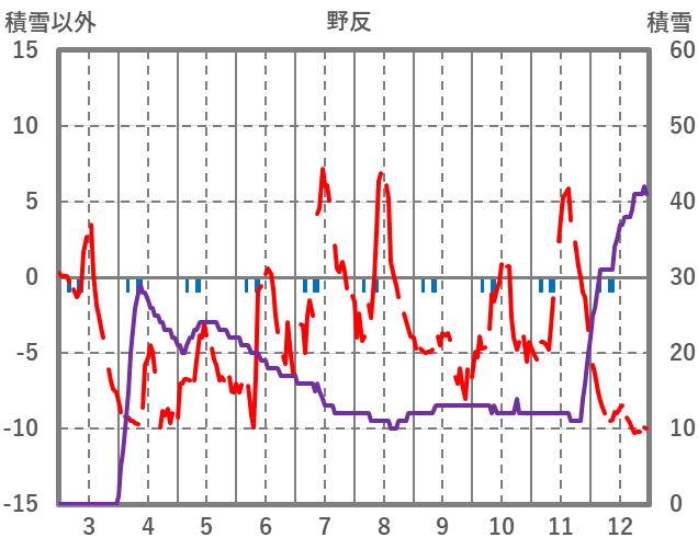| 日 | 時 | 気温 | 降水 | 風向/風速 | 日照 | 積雪 | 降雪 |
