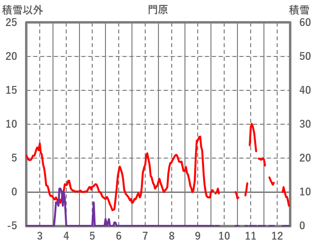 | 日 | 時 | 気温 | 降水 | 風向/風速 | 日照 | 積雪 | 降雪 |