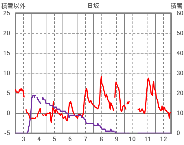| 日 | 時 | 気温 | 降水 | 風向/風速 | 日照 | 積雪 | 降雪 |