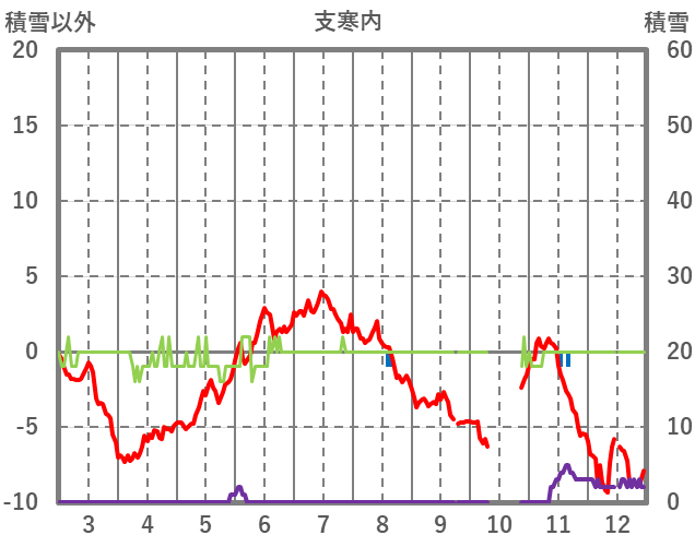 | 日 | 時 | 気温 | 降水 | 風向/風速 | 日照 | 積雪 | 降雪 |