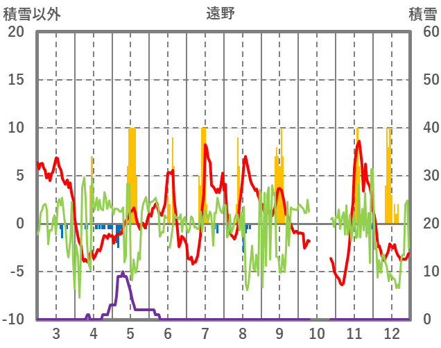 | 日 | 時 | 気温 | 降水 | 風向/風速 | 日照 | 積雪 | 降雪 |
