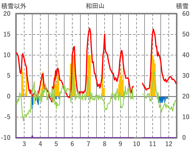 | 日 | 時 | 気温 | 降水 | 風向/風速 | 日照 | 積雪 | 降雪 |