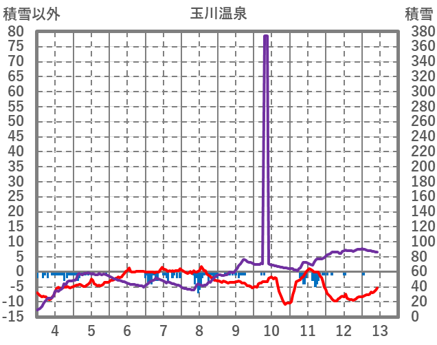 | 日 | 時 | 気温 | 降水 | 風向/風速 | 日照 | 積雪 | 降雪 |