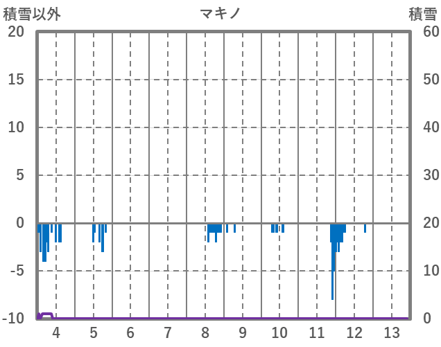 | 日 | 時 | 気温 | 降水 | 風向/風速 | 日照 | 積雪 | 降雪 |