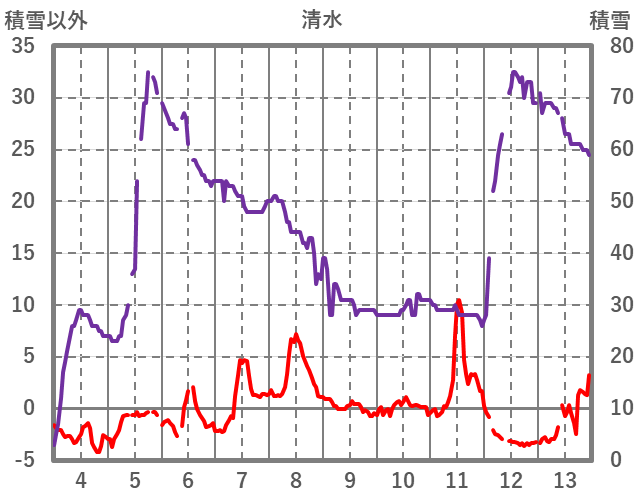 | 日 | 時 | 気温 | 降水 | 風向/風速 | 日照 | 積雪 | 降雪 |